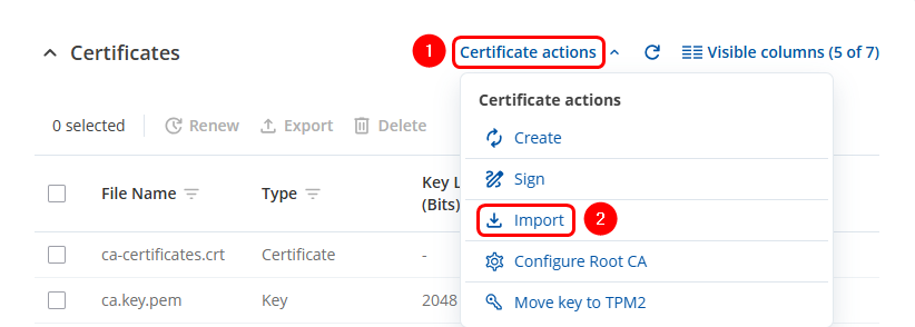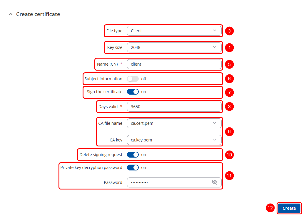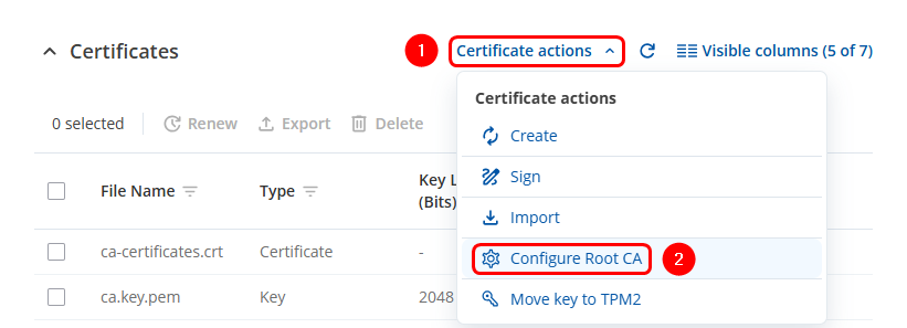- The system should automatically detect the CA certificate and key files from the "Certificates Manager" tab.