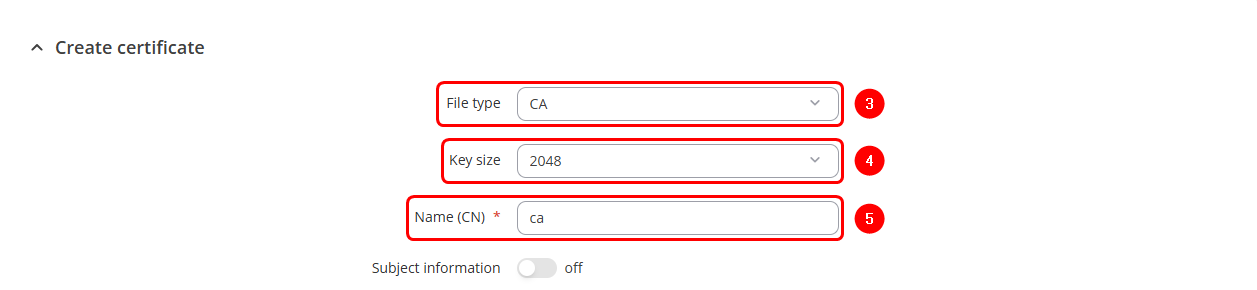 - By enabling Subject Information, you can provide details about the entity to which the certificate is issued (Optional):
