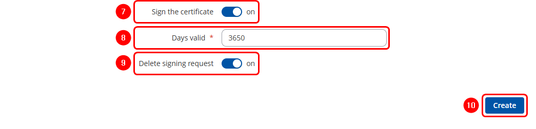 - "Delete Signing Request" can be enabled, as it is not required after generation.