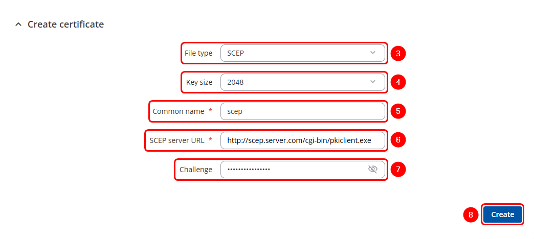 The easiest way to generate certificates and keys is by using the Certificate Generation page that is available in the device's WebUI: