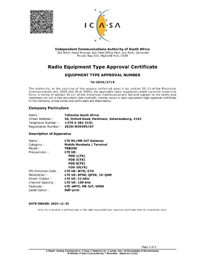 Radio frequency transmitter and receiver products that make use of the radio spectrum or connect to the public network and are intended to be marketed in South Africa are subject to mandatory ICASA type approval certification, unless specifically exempt by the Regulatory Authority.