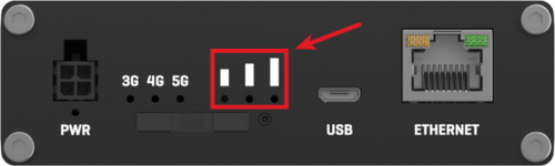 The Mobile signal strength LEDs can also be used as a time indicator for holding the reset button. When you press and hold the reset button, if there is a User's default configuration configured on the device, you have to hold it pressed for 6 seconds (by default) to initiate a User's default configuration reset and 12 seconds (by default) to initiate a Factory reset. Otherwise, it is only necessary to hold the reset button for 6 seconds to trigger a Factory reset. If the button was held down longer than 20 seconds (by default) no action will be taken.