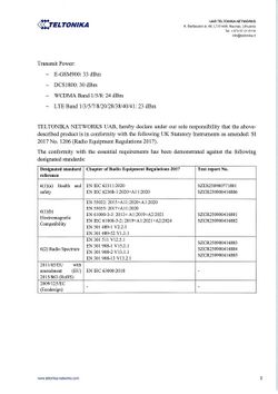 | EN 55032: 2015+A11:2020+A1:2020 EN 55035: 2017+A11:2020 EN 61000-3-3: 2013+ A1:2019+A2:2021 EN IEC 61000-3-2: 2019+A1:2021+A2:2024 EN 301 489-1 V2.2.3 EN 301 489-52 V1.3.1 |