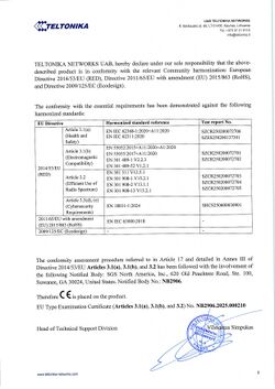 | EN 55032:2015+A11:2020+A1:2020 EN 55035:2017+A11:2020 EN 301 489-1 V2.2.3 EN 301 489-52 V1.2.1 |