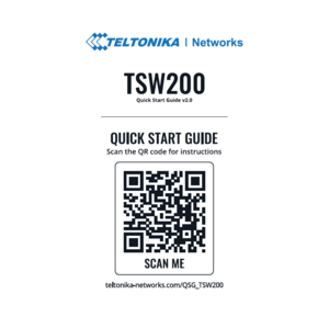 TSW200 devices manufactured starting from Q4 2022 will have a new QSG flyer in the packaging. The new QSG flyer includes the short version of QSG with a QR code/link to the full Web QSG version: teltonika-networks.com/QSG_TSW200.