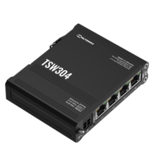 TSW304 is an industrial unmanaged Gigabit switch with 4 Ethernet ports and DIN rail mounting support.