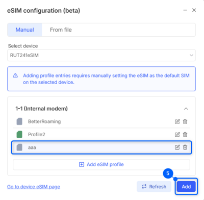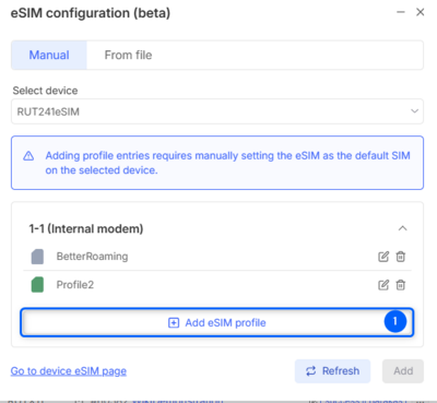 - From file - for configuring a list of eSIM profiles to single or multiple devices.